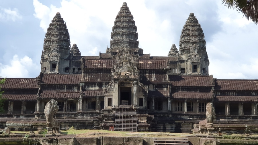 アンコール・ワットは「町のお寺」という意味で、12世紀初め頃に造られた世界最大級の宗教建築です。遺跡の広さは東西約1.5km、南北約1.3kmに及びます。