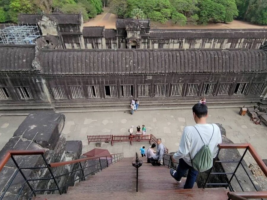 アンコールワット第3回廊の階段はとても高く急ですので、11歳までのお子さんや、妊婦の方は安全のため登ることが禁止されています。