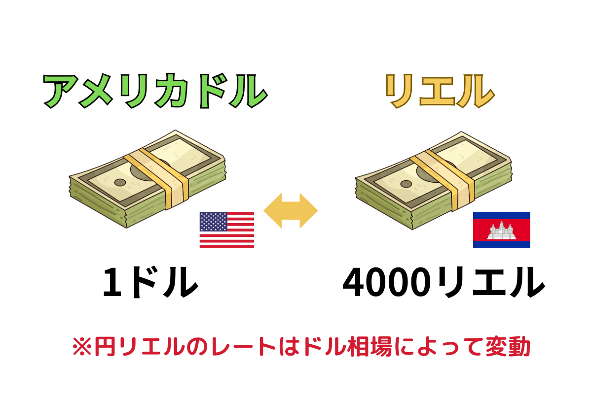 リエル円レートは基本的に「1ドル=4,000リエル」です。つまり4,000リエル未満の少額のお買い物やお釣りに関しては、リエルで取引されることが多くなります。