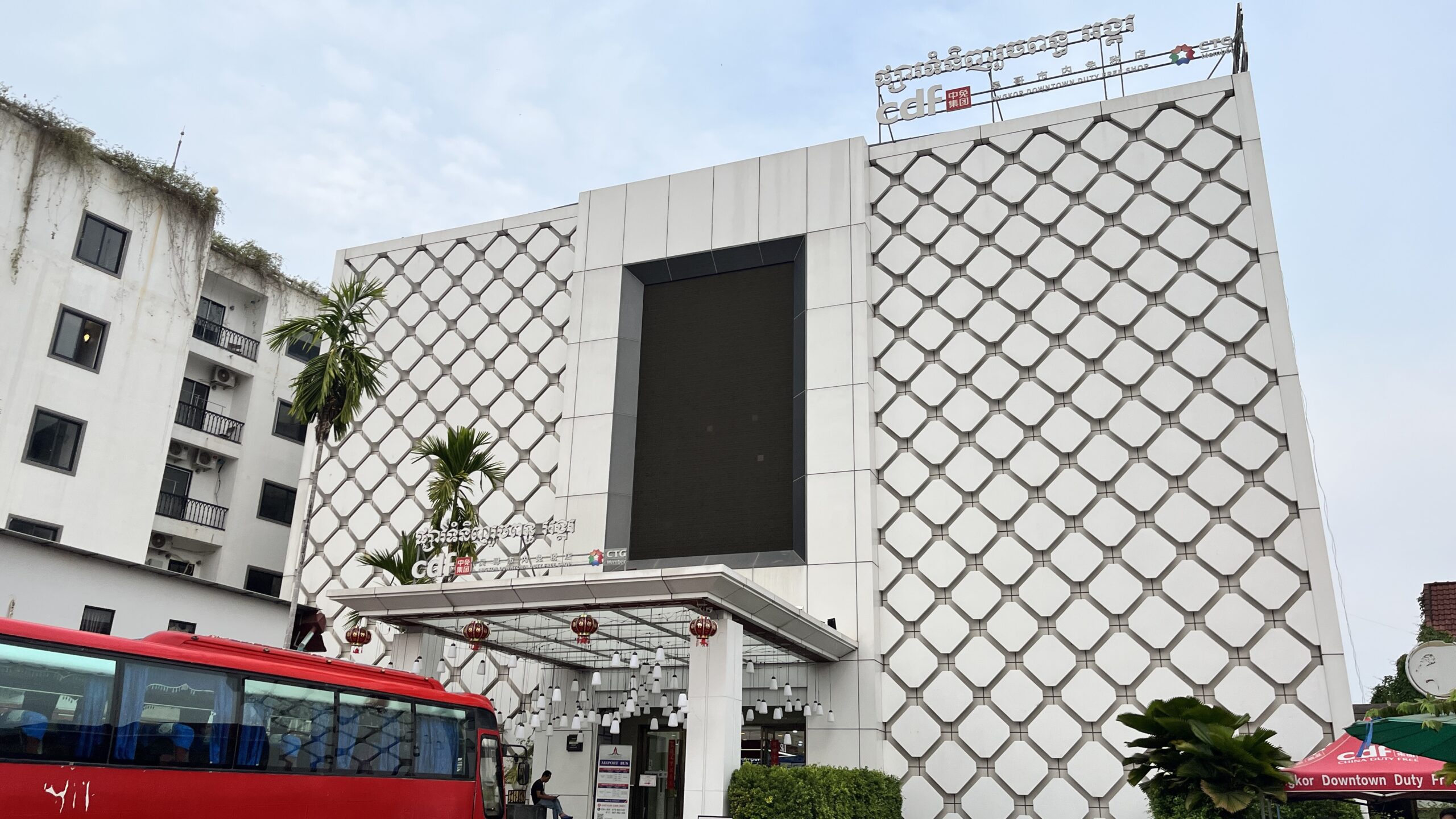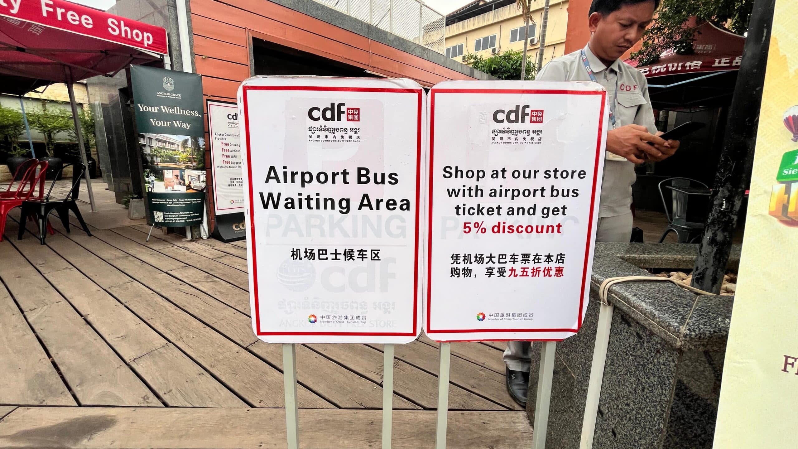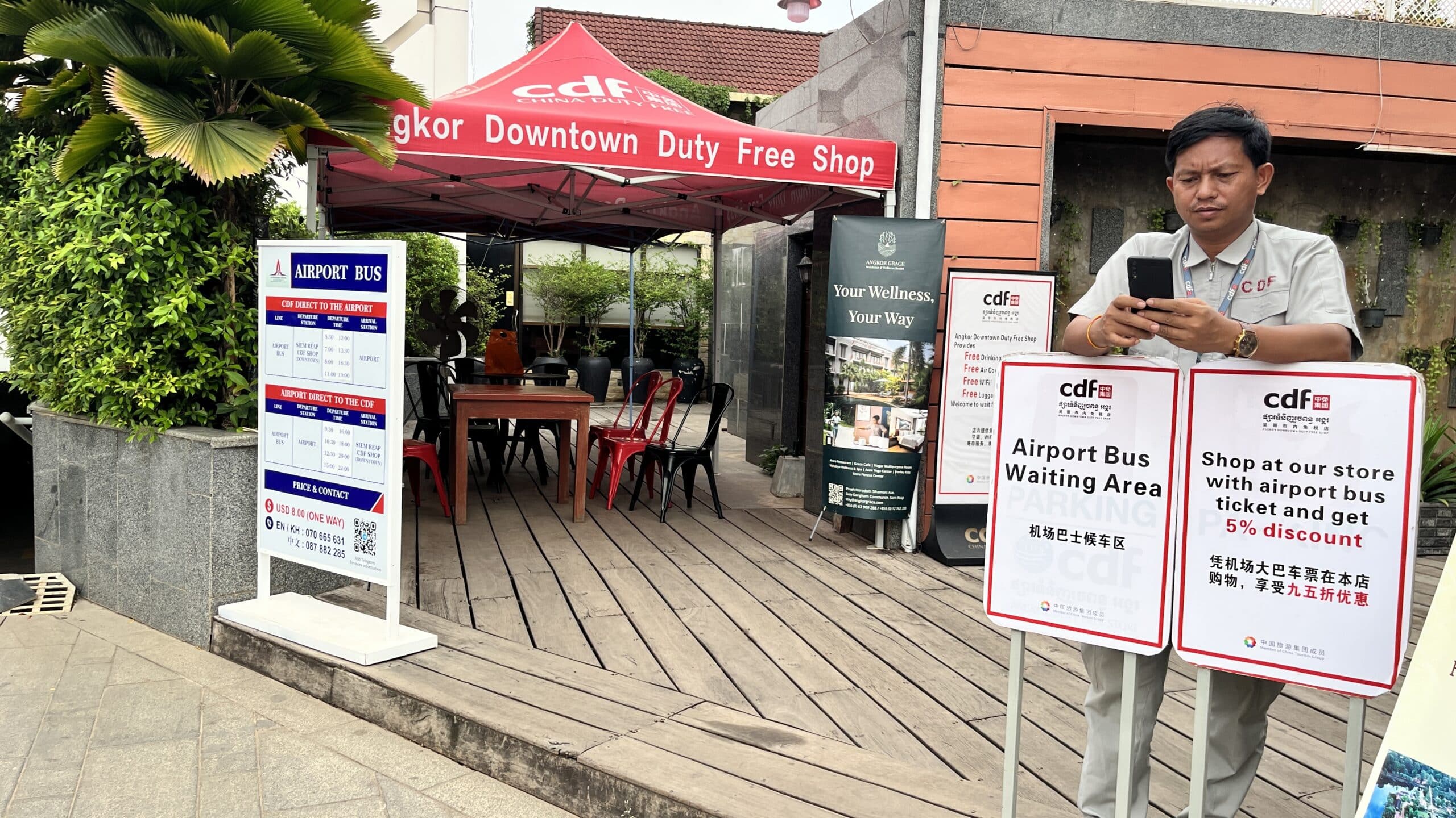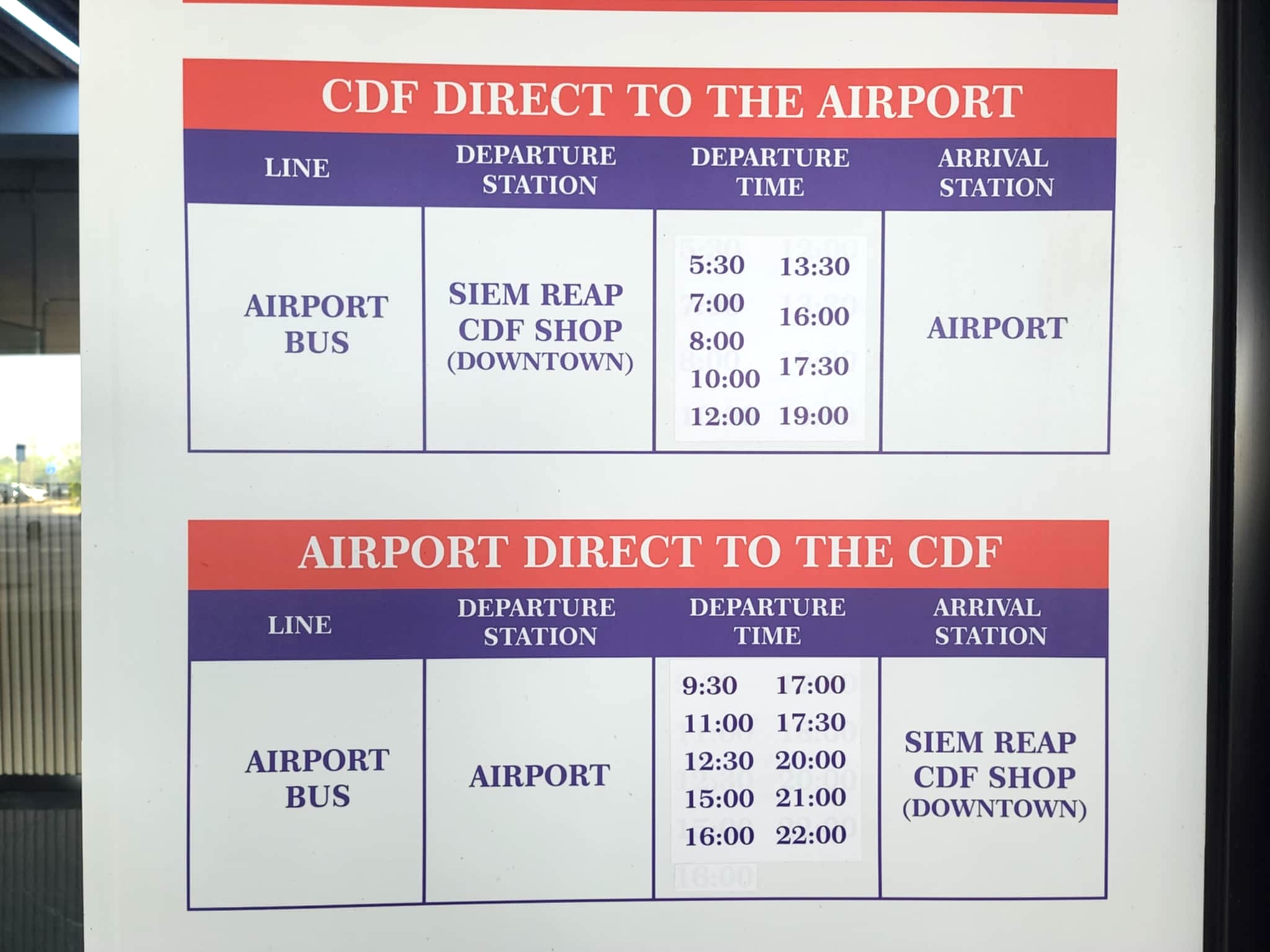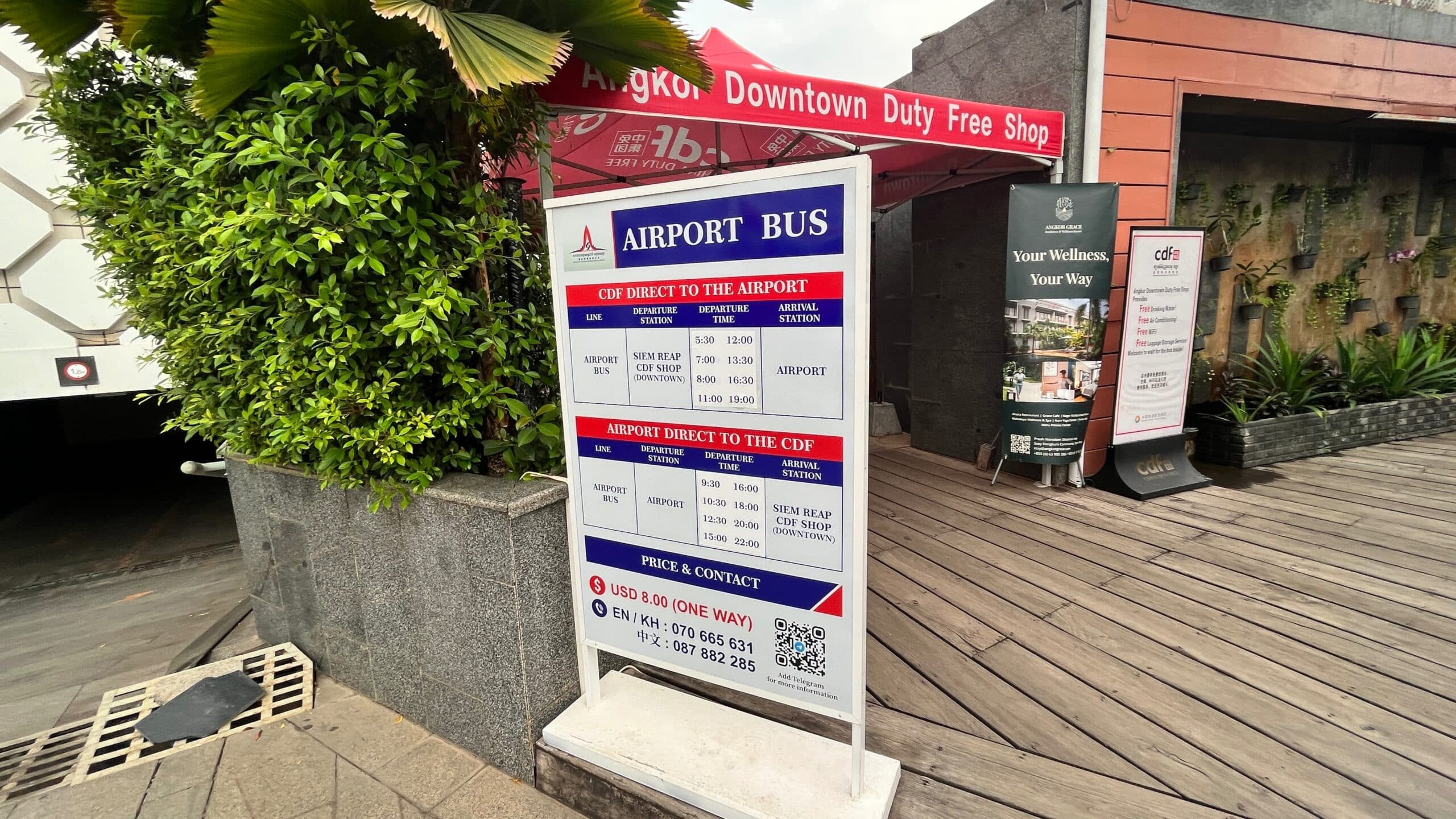 シェムリアップ空港行きのシャトルバスは、市内中心にある大型免税店のCDF Angkor Duty Free Shop前にあるシャトルバス乗り場から出発します。