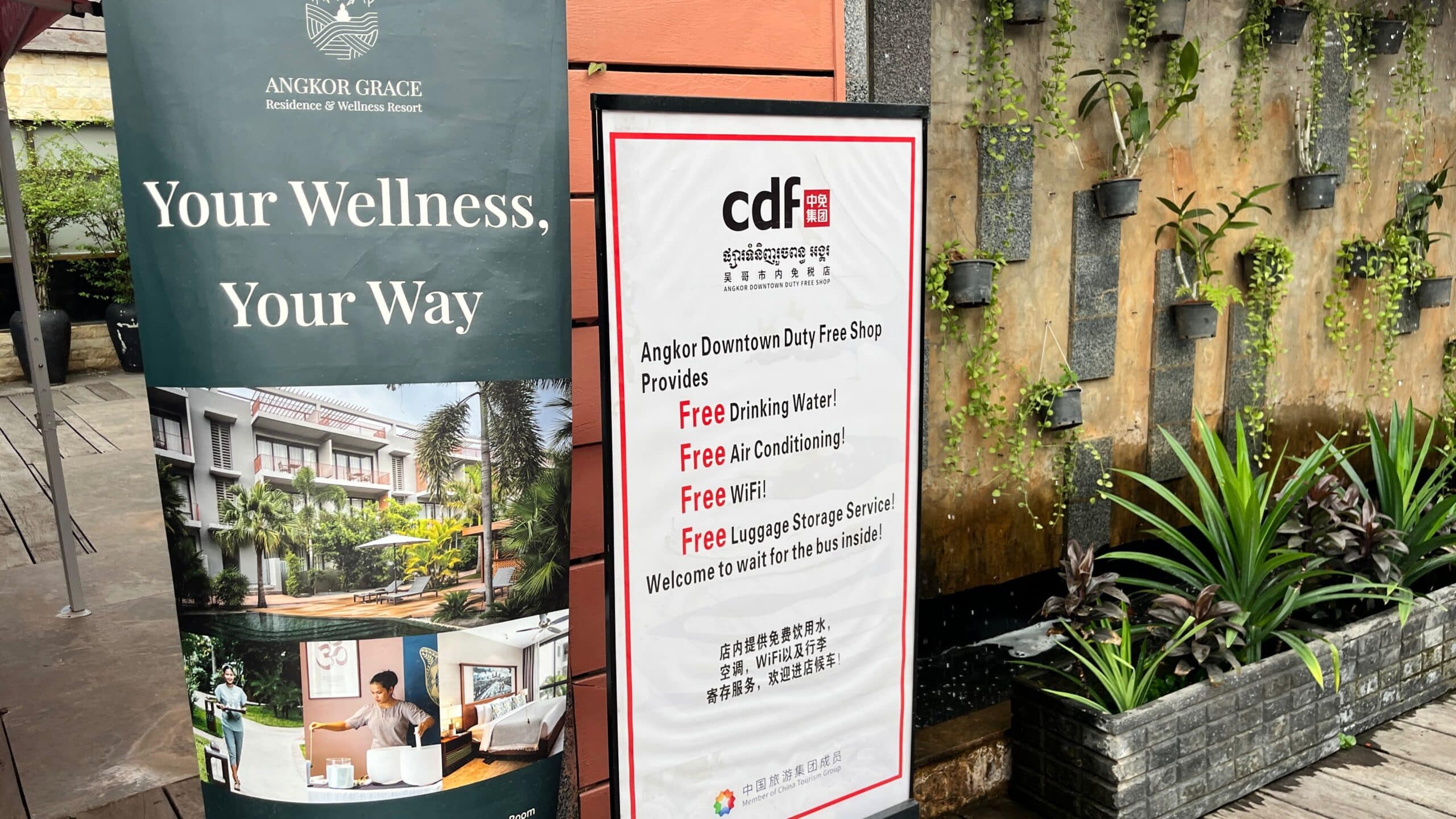 CDF Angkor Duty Free Shopはエアコンが効いていて、フリーWiFiで、飲み水が無料で飲め、荷物の預かりサービスもあるため、シャトルバスの待ち時間を有効活用できます。