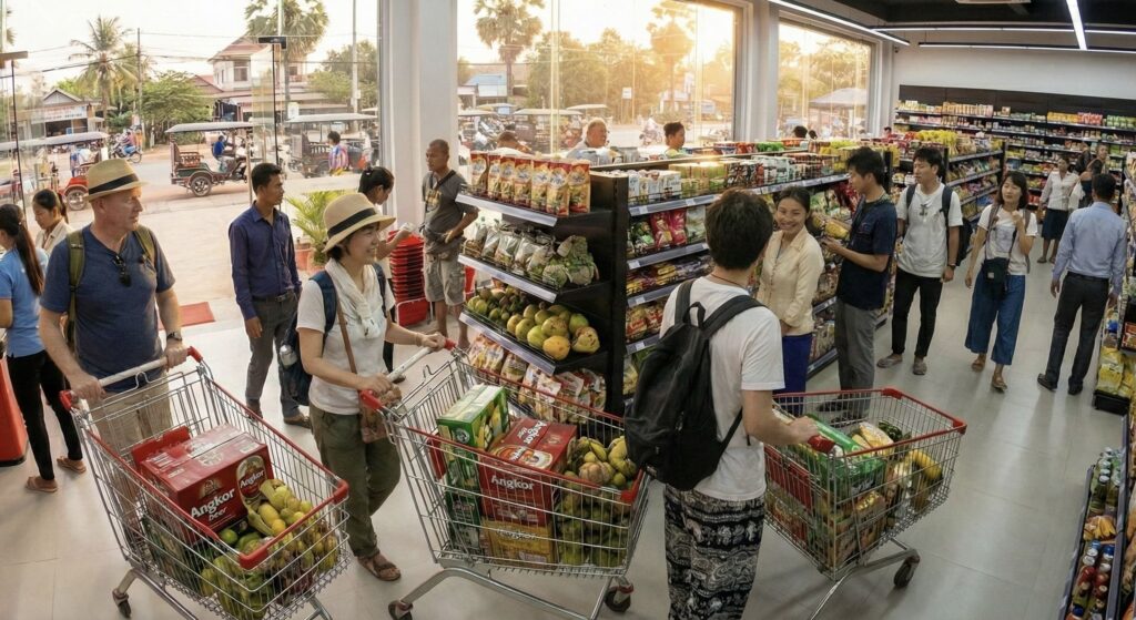 シェムリアップのスーパーでショッピングを楽しみましょう。